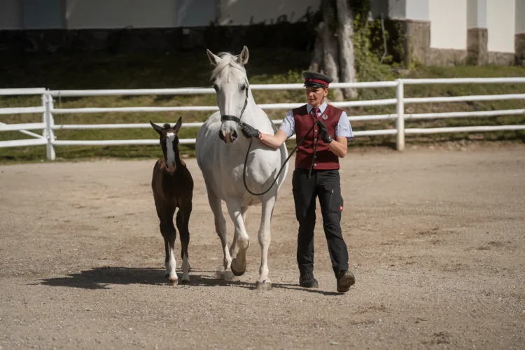 Immerse yourself in the breeding and upbringing of Lipizzaner foals and discover how these young horses grow up at the Piber Stud. Explore the secrets behind the training of the broodmares and experience how responsible training and trust between horse and human are carefully cultivated.